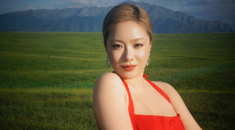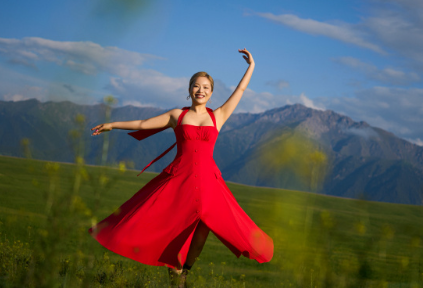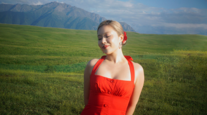 王菊的红裙, 在这一望无垠的草原上格外耀眼!