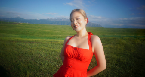 王菊的红裙,在这一望无垠的草原上格外耀眼!